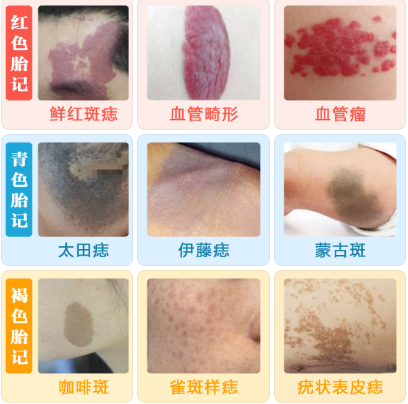 少数胎记在出生后数周、数月甚至数年内才逐渐显现,常见类型包括: